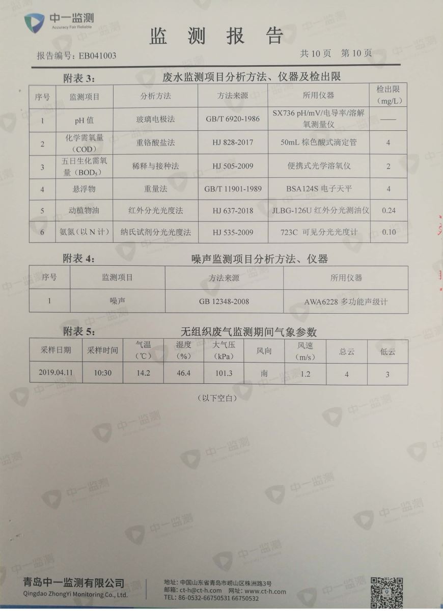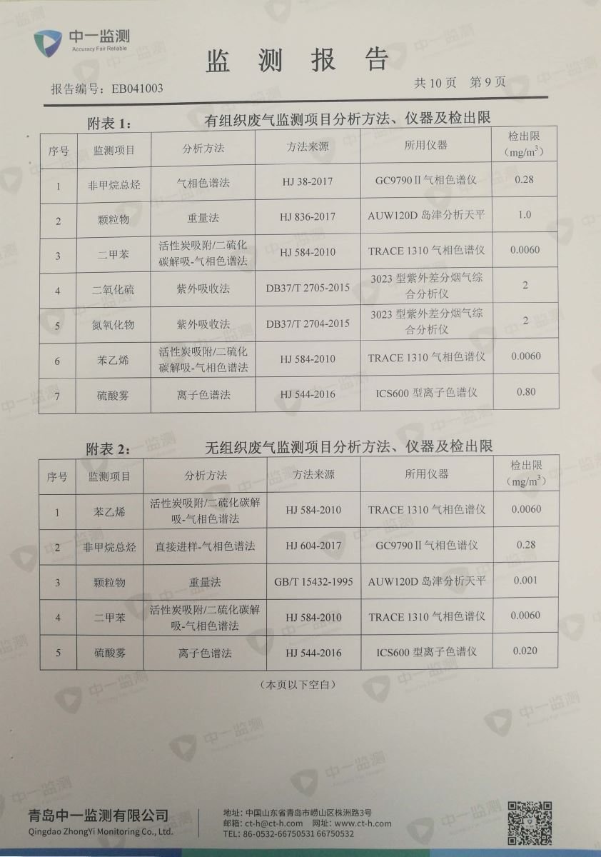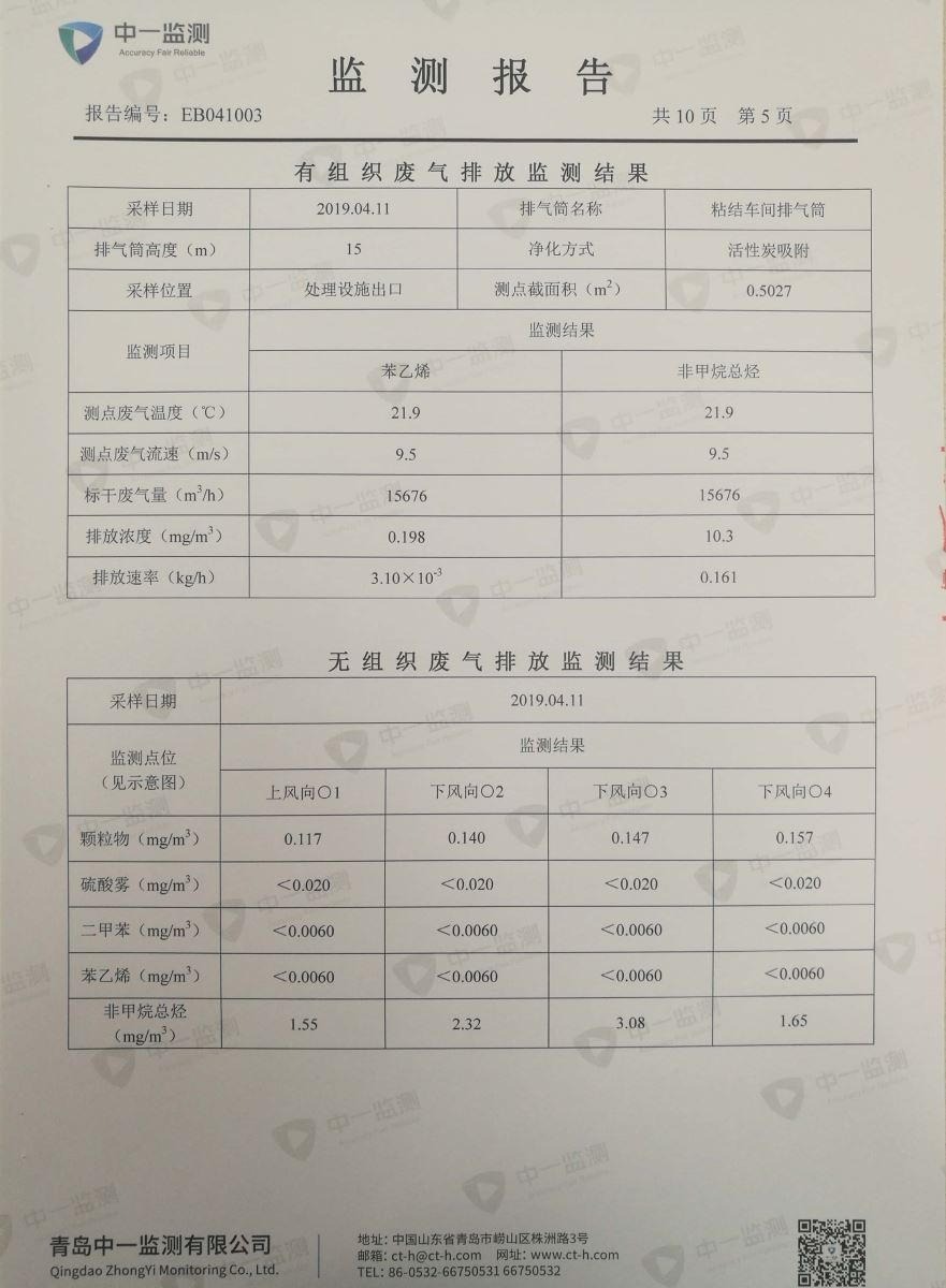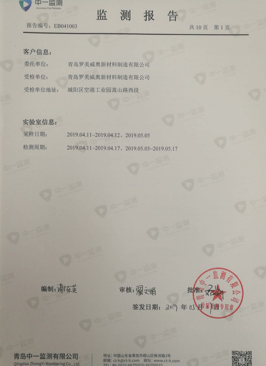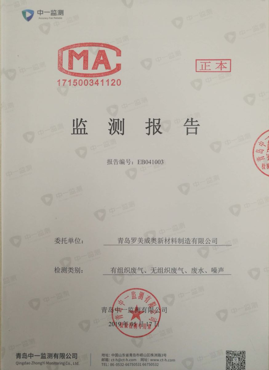 青岛罗美威奥新材料制造有限51漫画监测报告(2019年度)